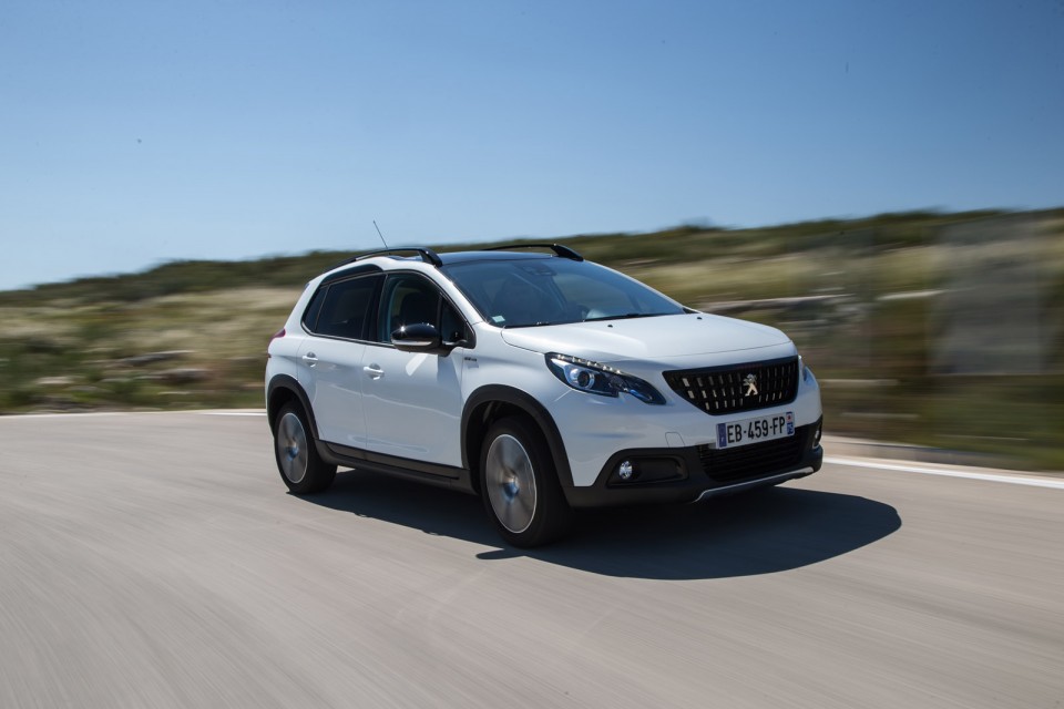 Photo officielle de la Peugeot 2008 GT Line Blanc Nacré lors des essais internationaux de la nouvelle Peugeot 2008 restylée dans la région de Valence en Espagne (Mai 2016)