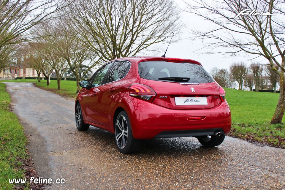 Photo de notre essai de la nouvelle Peugeot 208 GT Line Rouge Rubi, la citadine au style chic et sportif basée sur la nouvelle 208 restylée équipée du moteur 3 cylindres essence 1.2 l PureTech de 110 chevaux et d'une boîte automatique EAT6 à 6 rapports (Février 2016)