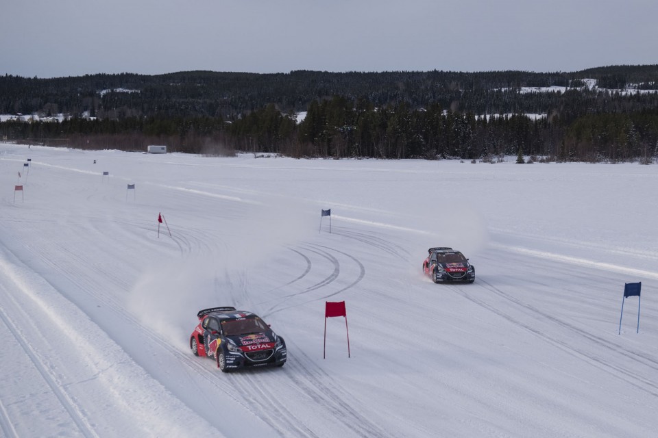 Sebastien Loeb and Timmy Hansen perform during the Rallycross on Ice project in Are, Sweden on February 16, 2016 // Jaanus Ree/Red Bull Content Pool // P-20160226-00326